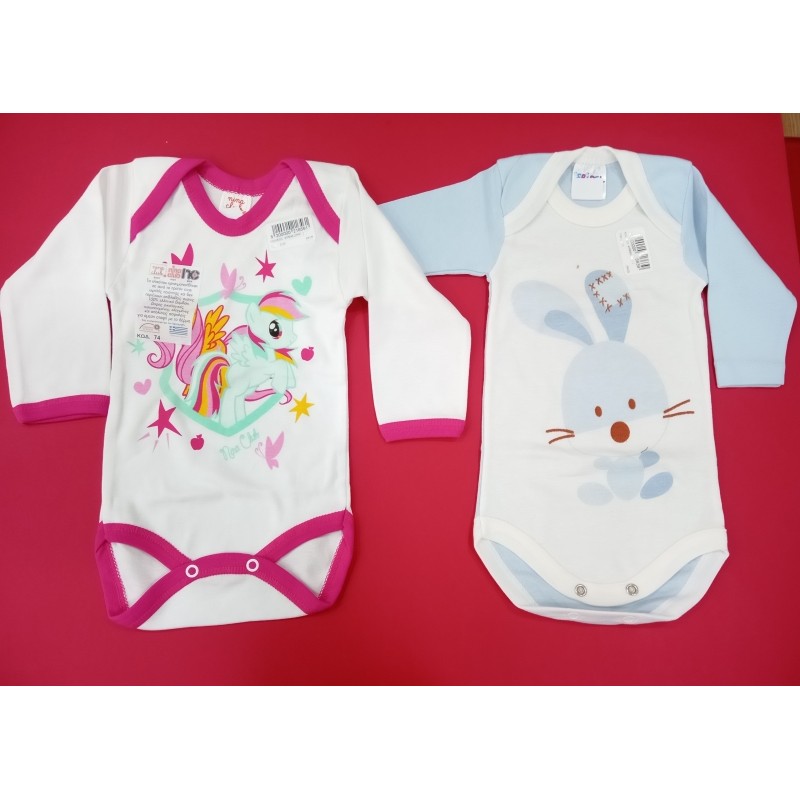 Κορμάκι μακρυμάνικο για τα γλυκά μωράκια μας, από 100% βαμβακερό ύφασμα και ειδικές βαφες στα τυπώματα χωρίς επιβλαβείς ουσίες . Άνοιγμα με τρουκς στο κάτω μέρος για εύκολη αλλαγή πάνας. Τα σχέδια στις φωτογραφίες είναι ενδεικτικα και το χρώμα καθορίζεται με βάση το χρώμα στο τελείωμα στο λαιμό , μανίκια κ ποδαράκια.