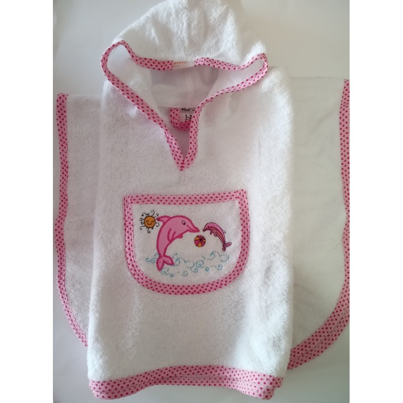 Ένα όμορφο πόντσο με κουκούλα και απλικέ σχέδιο μπροστά Το απορροφητικό βαμβακερό ύφασμα με μικροινες που στεγνώνει γρήγορα το καθιστά απαραίτητο αξεσουάρ στη θάλασσα.